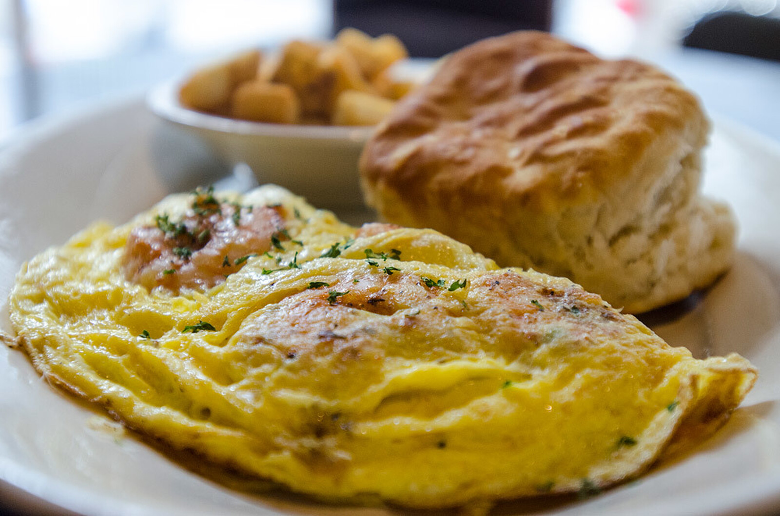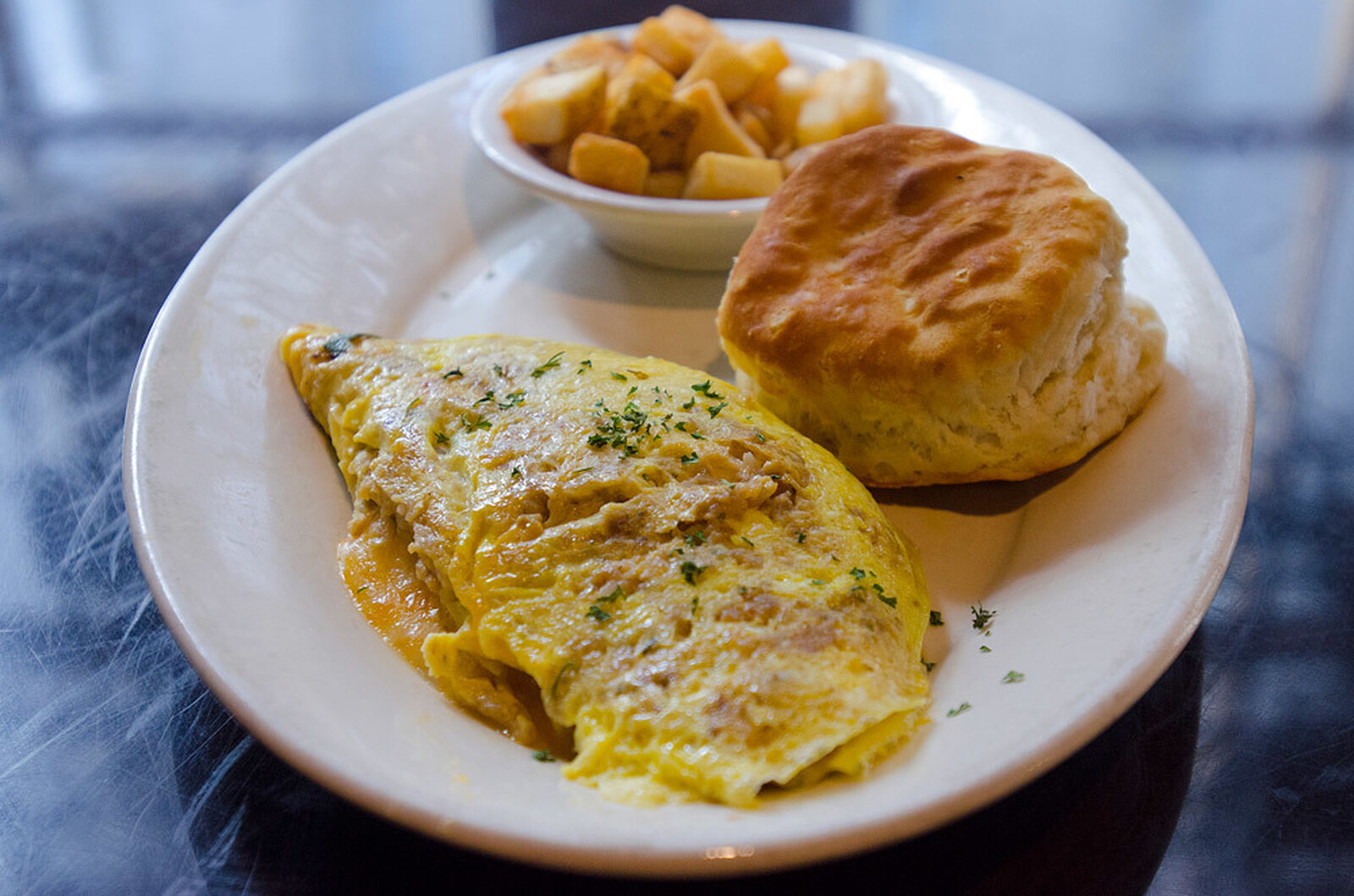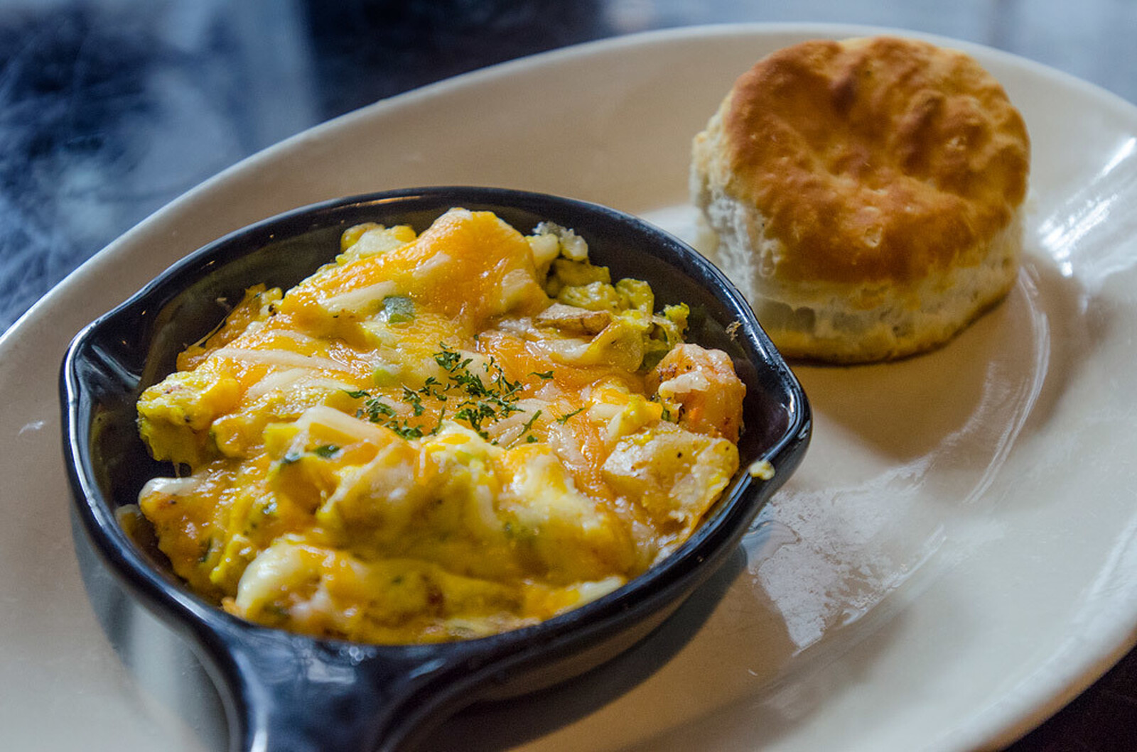 Two eggs any style, applewood-smoked bacon, potatoes with a buttermilk biscuit